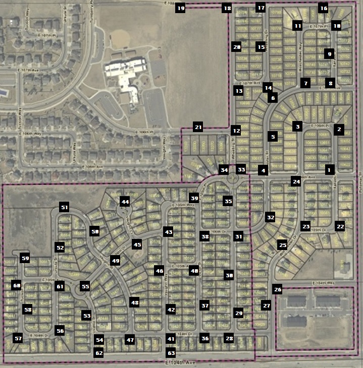 The map below shows the locations of the 60 street lights throughout the Potomac Farms neighborhood. The street lights are maintained by United Power. To submit a request to United Power to repair a street light or replace a light bulbs, click on the link below.